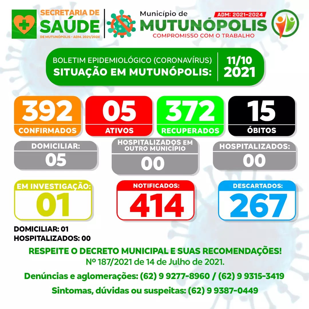 O Município de Mutunópolis, por meio da Secretaria de Saúde, atualiza a população com o boletim do COVID-19.